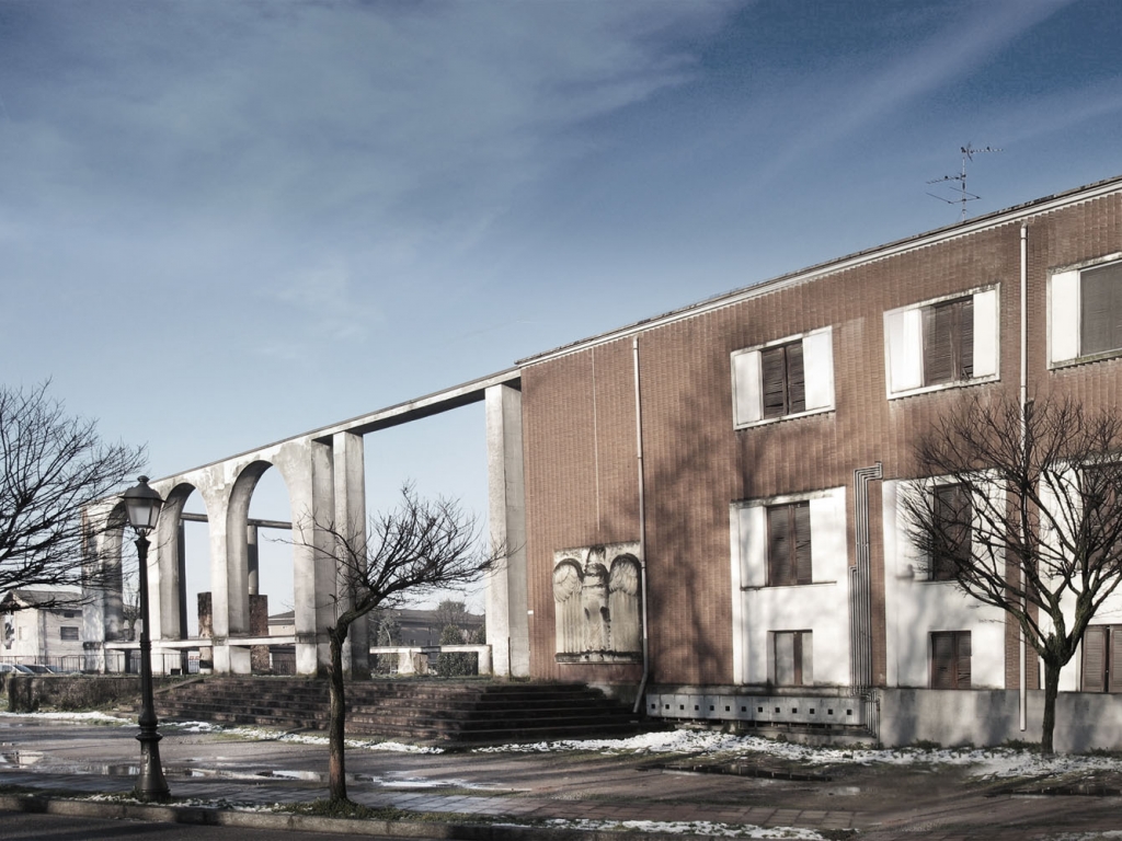 L’edificio, progettato dall’architetto Alziro Bergonzo, è stato completato nel 1939. La struttura è caratterizzata da mattoni a vista e da un imponente peristilio in cui si svolgevano manifestazioni di carattere politico. Sebbene siano ancora visibili tracce della scritta “Nel segno del littorio abbiamo vinto. Nel segno del littorio vinceremo.”, unico superstite tra i fregi è l’aquila fascista. Nata come sede locale del Partito Fascista, la Casa del Fascio è stata trasformata nel 1945 in alloggi per famiglie disagiate, funzione mantenuta fino al 2004.