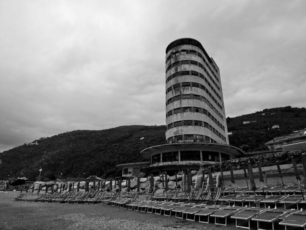 L’ex colonia Fara sita a Chiavari, in provincia di Genova, si staglia ormai abbandonata da anni sovrastando cupamente una bella spiaggia della città. Commissionata dal Partito Nazionale Fascista nel 1935 è un classico esempio del Razionalismo italiano. Da molto tempo versa in uno stato di abbandono totale, circondata da transenne e divieti continua comunque a essere un luogo di ritrovo per chi una dimora fissa non ce l’ha. L’ex colonia Fara di Chiavari fu concepita inizialmente come luogo di villeggiatura estiva per 400 balilla diventò poi nel tempo un ospedale militare, un rifugio per soldati tedeschi e alleati poi, tornò luogo di balneazione, ospitò profughi istriani, divenne poi l’albergo internazionale della gioventù italiana denominato Il Faro, abbandonato per vent’anni fu riutilizzato dal comune come scuola elementare e sede di associazioni. Successivamente, alla fine degli anni 90, la struttura chiuse in modo definitivo perché troppo fatiscente. L’ex colonia Fara di Chiavari ritenuta pericolante già negli anni 80 versa in uno stato di profondo abbandono anche se a pochi metri esiste uno stabilimento balneare discretamente frequentato durante l’estate. Le transenne e i cancelli con lucchetti non impediscono ai disperati di trovare tra le macerie un luogo chiuso in cui passare la notte e creare qualcosa di simile a una casa. (Pollyanna Zamburlin)